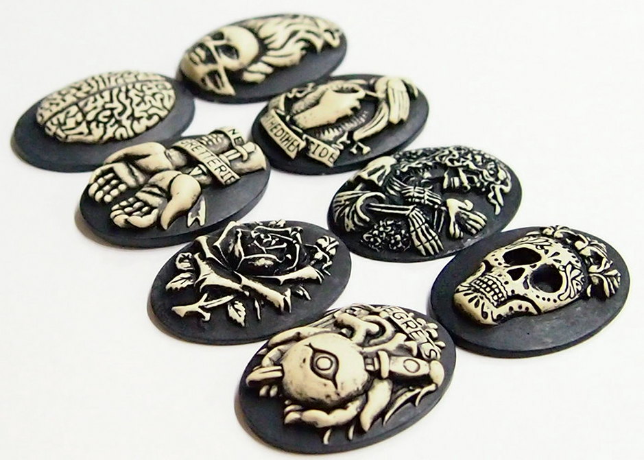 You are buying 8 Different Gothic 40 mm X 30 mm Cameos. These are really nice & the details are very good. These are a cream over black background. Just in time for HALLOWEEN. These have everything Gothic you need. There are Skulls & Brains all the way to Skeletons and a Black Rose. I have lots of great cameos, settings and pendants so, just look at all my listings.