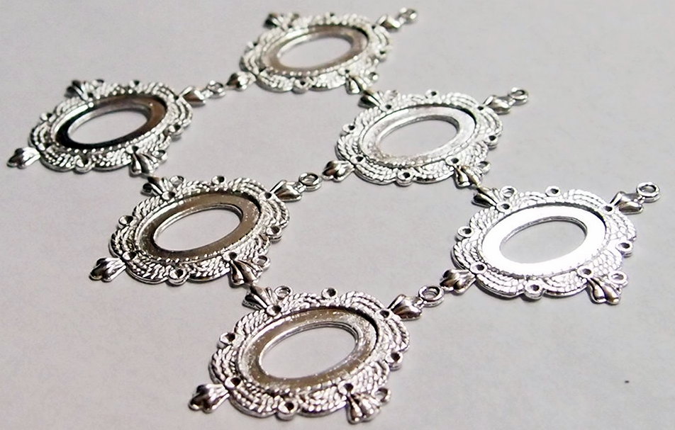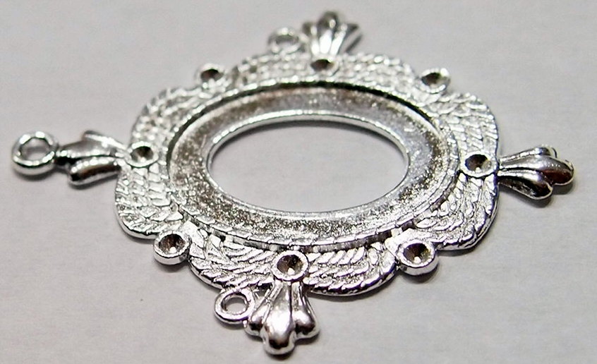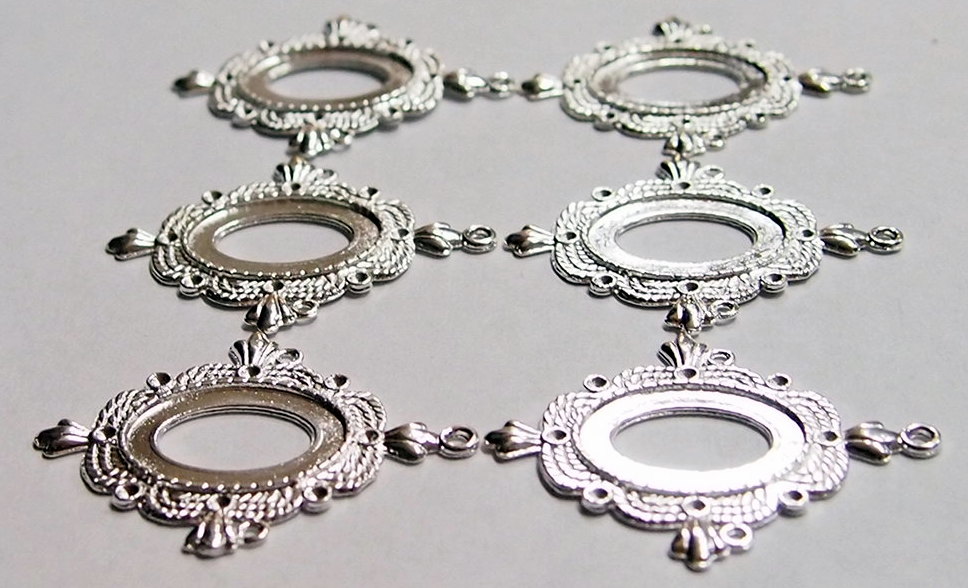 You are buying 6 of 25 mm x 18 mm Pendant Settings, these are Silver Plated, they are a Glue in setting and are very sturdy. They have a triple twisted rope design with a crown on each corner around the pendant. These have never been used. These are exactly made for 25 mm x 18 mm, no other size will fit. Everything is solidly made from the setting to the pendant bail. They have a gorgeous Victorian look to them and I believe these are very flattering for cameos. I have lots of great cameos, settings and pendants so, just look at all my listings.