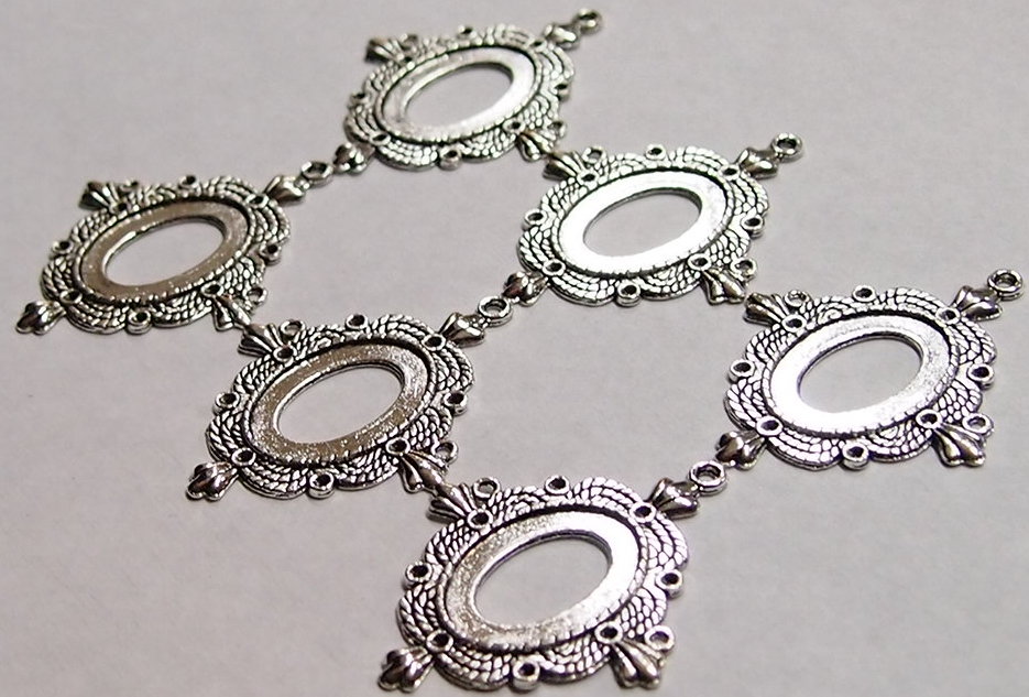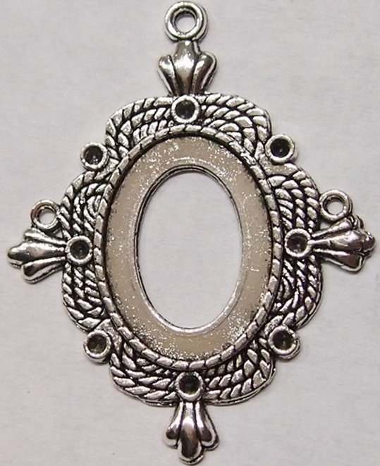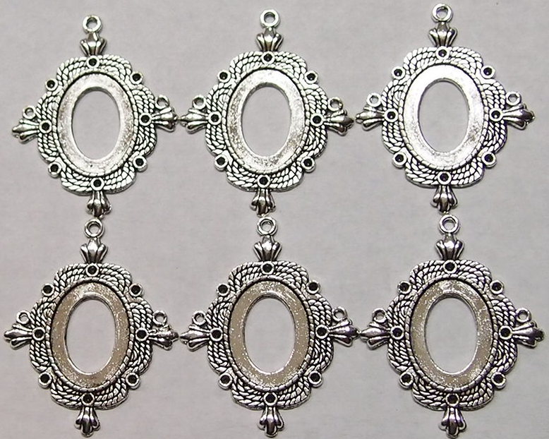 You are buying 6 of 25 mm x 18 mm Pendant Settings, these are Antique Silver Plated, they are a Glue in setting and are very sturdy. They have a triple twisted rope design with a crown on each corner around the pendant. These have never been used. These are exactly made for 25 mm x 18 mm, no other size will fit. Everything is solidly made from the setting to the pendant bail. They have a gorgeous Victorian look to them and I believe these are very flattering for cameos. I have lots of great cameos, settings and pendants so, just look at all my listings.