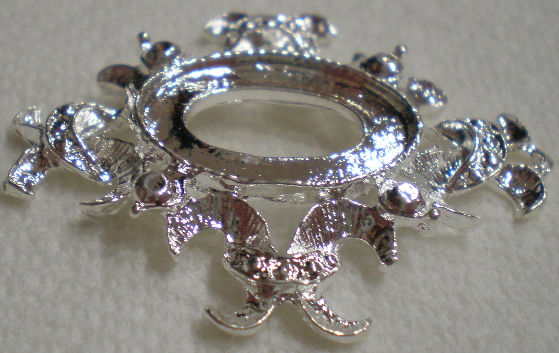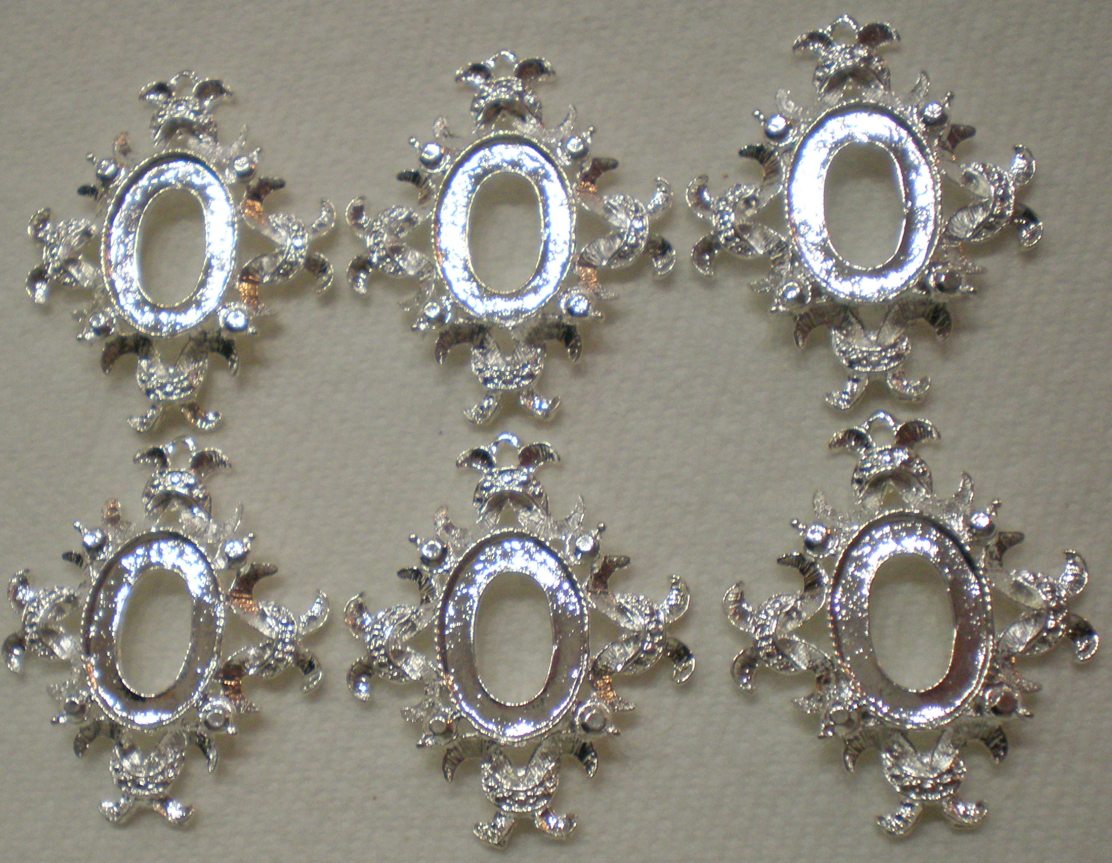 6 of 18x13 mm Shiny Silver Plated Pendant Setting OLD Style, with Beautiful Crown Design