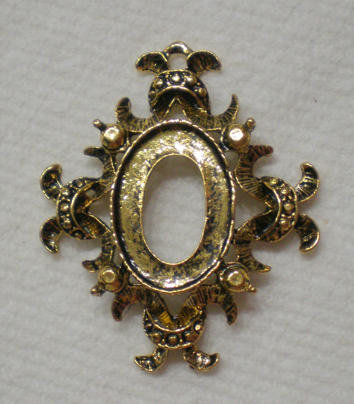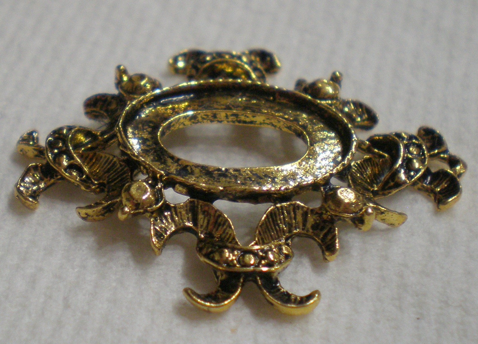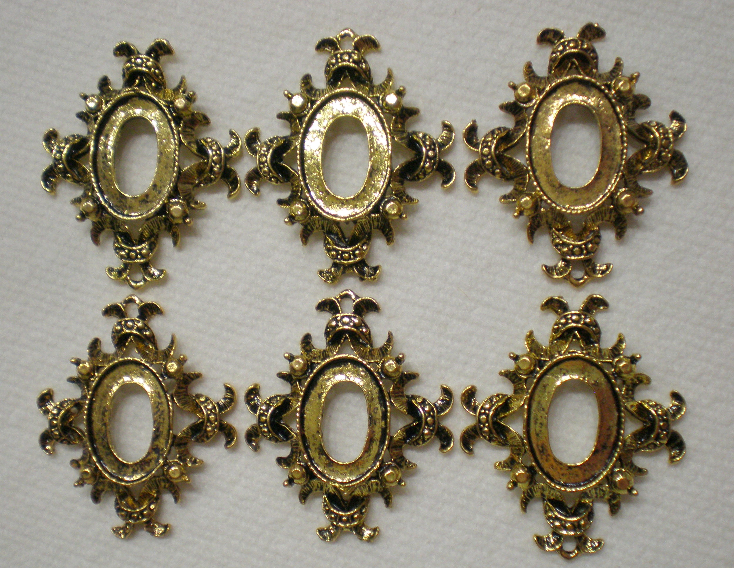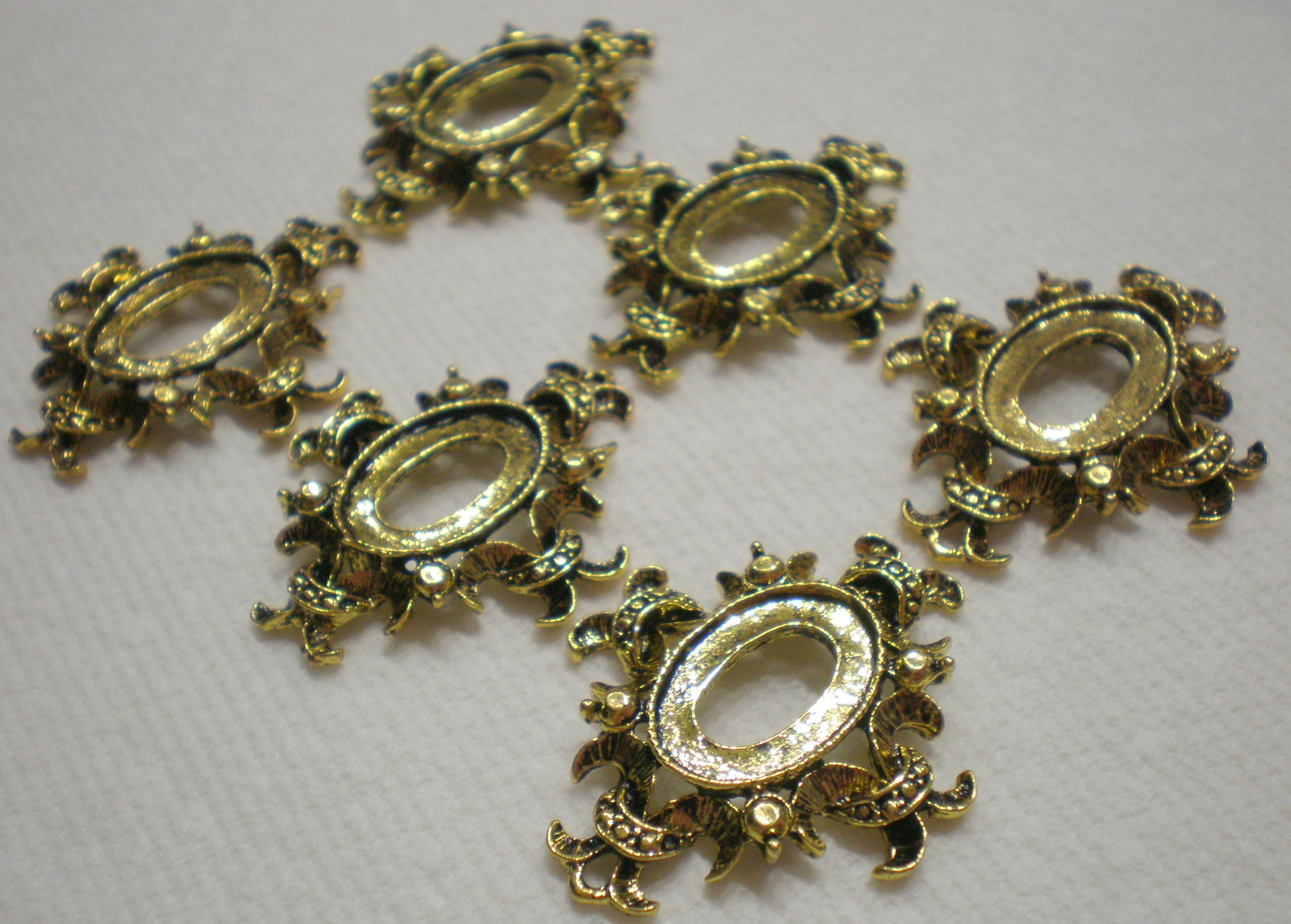 6 of 18x13 mm Antique Gold Plated Pendant Setting OLD Style, with Beautiful Crown Design