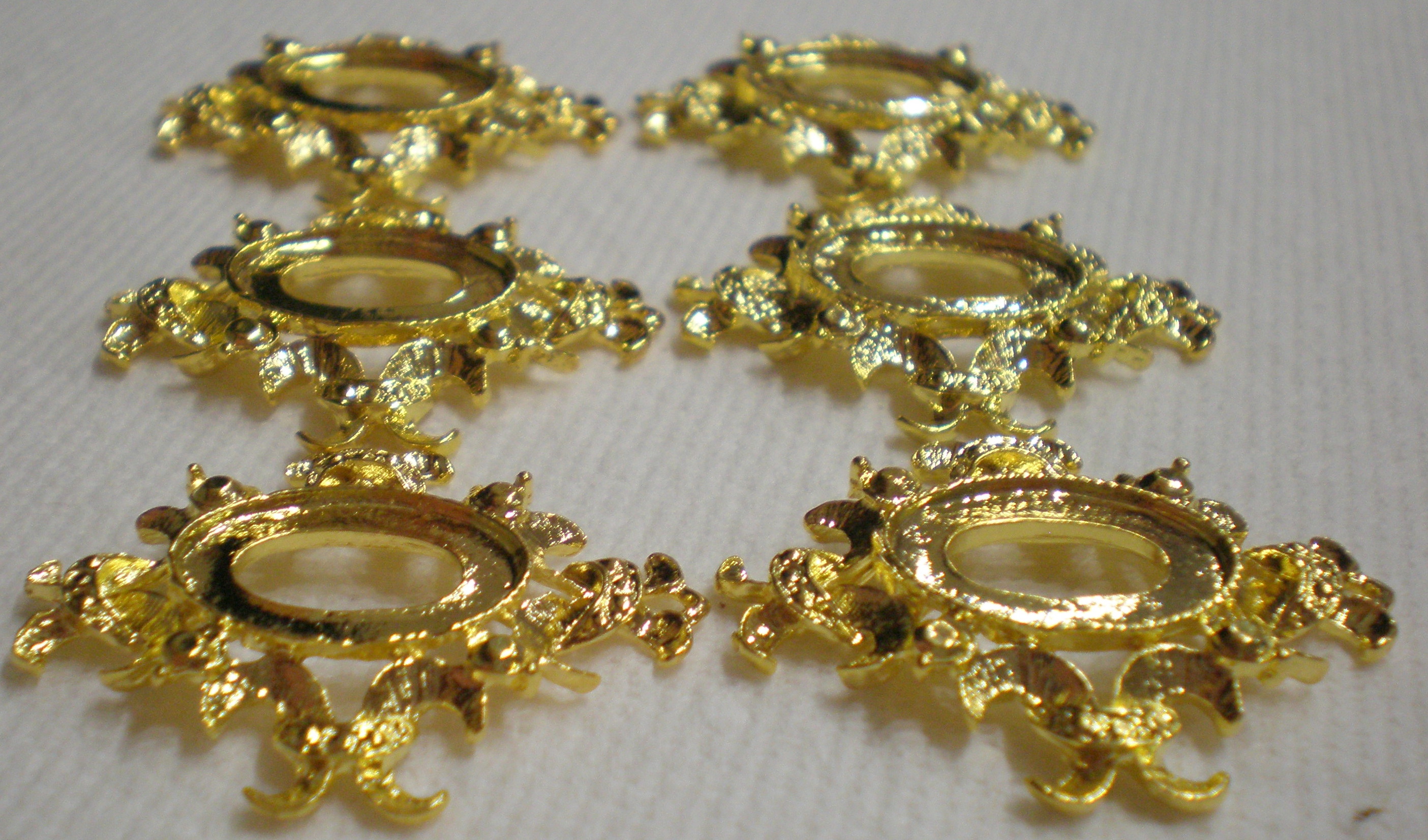 6 of 18x13 mm Shiny Gold Plated Pendant Setting OLD Style, with Beautiful Crown Design